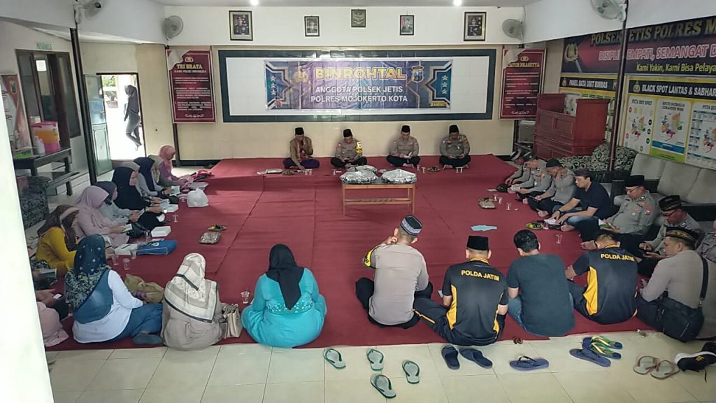 Pembinaan Rohani dan Mental dilaksanakan di Aula Polsek Jetis Polres Mojokerto Kota ,Pada hari Jum’at tanggal 5 Januari 2024 merupakan sebuah program yang dibuat oleh Polres Mojokerto Kota. Program ini dilaksanakan sebagai upaya memberikan pelayanan rohani kepada seluruh anggota Polsek Jetis dan Bhayangkari Ranting Jetis ranting anggota yang oleh Kapolsek Jetis Kompol Nanang Sujianto, S.h.,