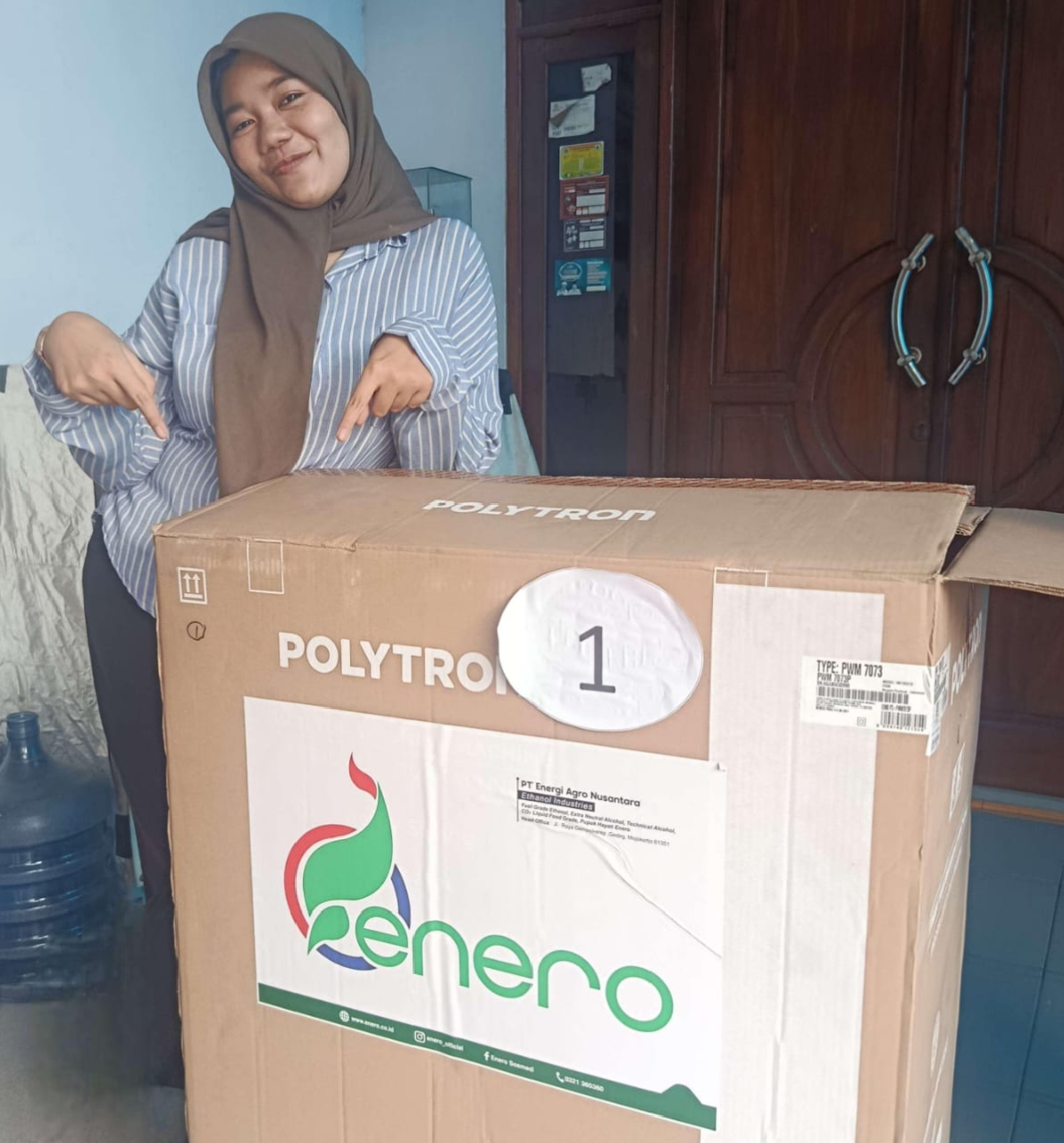 “Alhamdulillah, mesin cuci ini datang di waktu yang tepat. Mesin di rumah rusak, jadi selama ini cuci pakai tangan. Sekarang sudah terbantu sekali. Terima kasih, ini rezeki luar biasa,” tuturnya bahagia.
