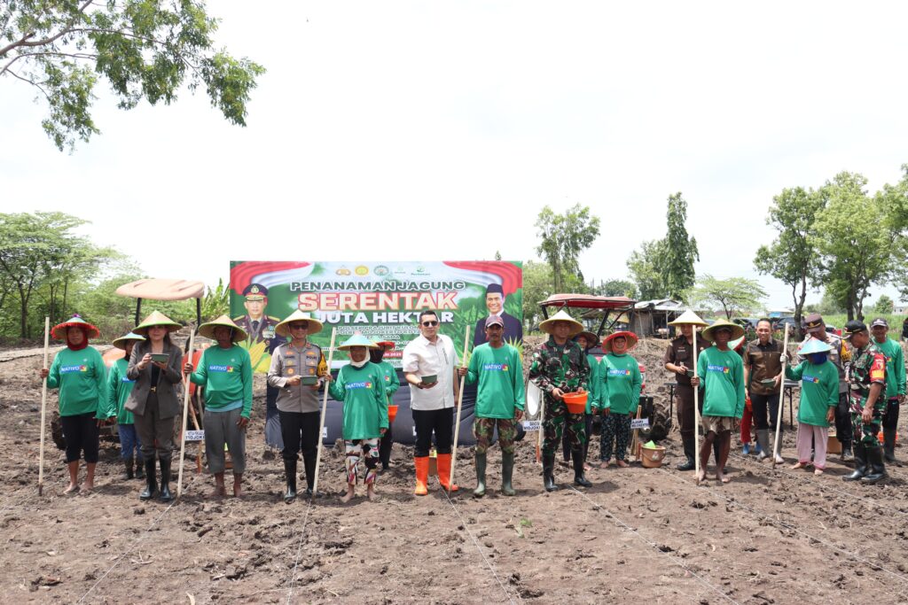Sebagai langkah mendukung ketahanan pangan melalui program tanam jagung satu juta hektar, Polres Mojokerto Kota bersama Pemerintah Kota Mojokerto menggelar penanaman jagung secara serentak di Kelurahan Blooto, Kecamatan Prajuritkulon, Kota Mojokerto, pada Selasa (21/01).
